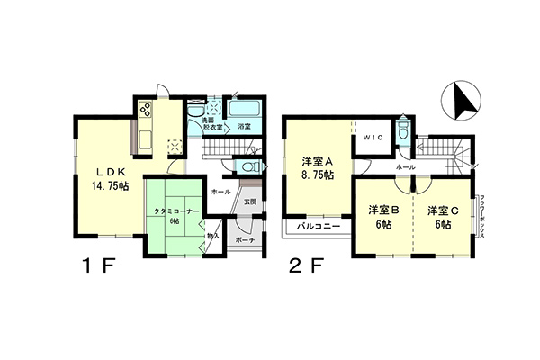 | 面積 | 1階 54.24㎡ 2階 46.78㎡ 合計:101.02㎡(30.55坪) |