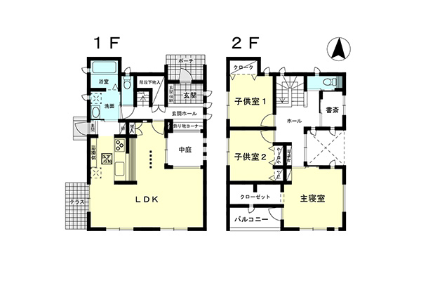 | 面積 | 1階 57.88㎡ 2階 54.57㎡ 合計:112.45㎡(34.01坪) |